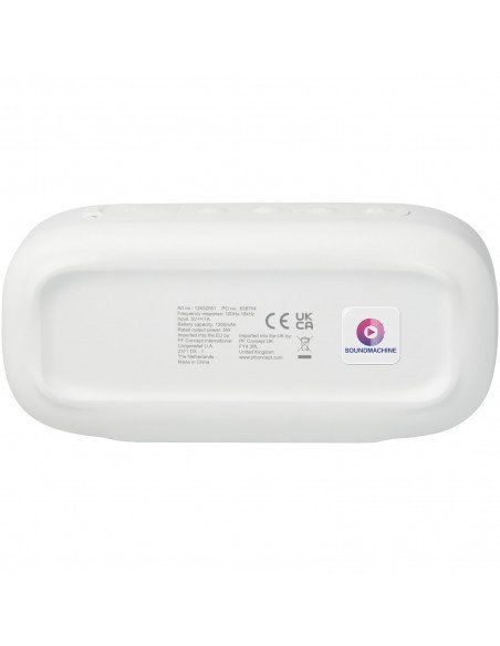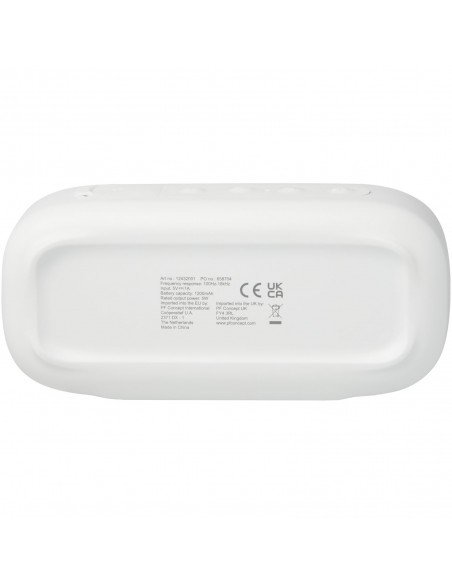 ABS speaker with rubber and fabric finish on the front. With a sophisticated design, this speaker has an autonomy up to 2h, with 5.0 bluetooth transmission and 3W power. It also has a wireless charger feature, with a 5W power, with 5V/2A input and 300 mAh battery. It includes a micro USB charging cable. Supplied in gift box