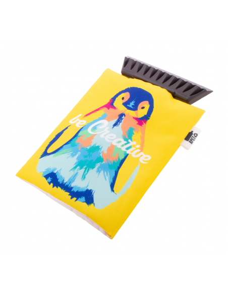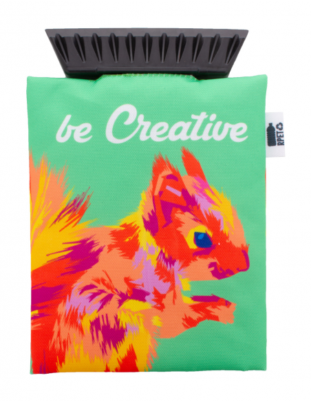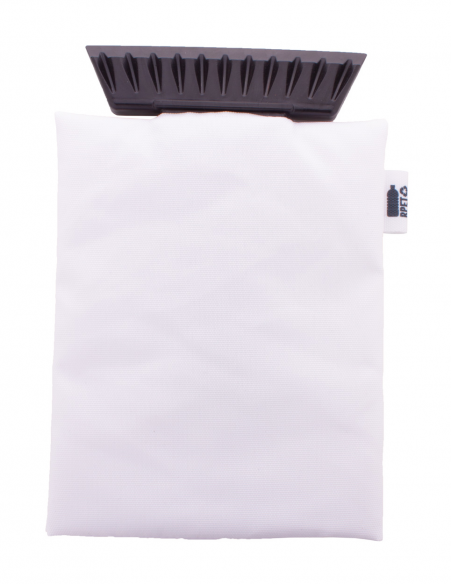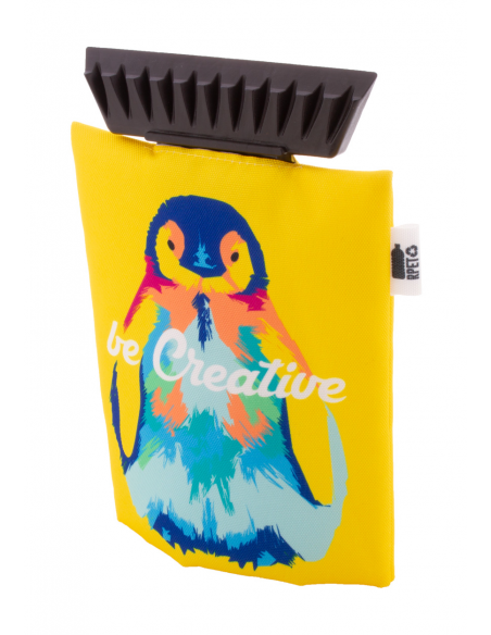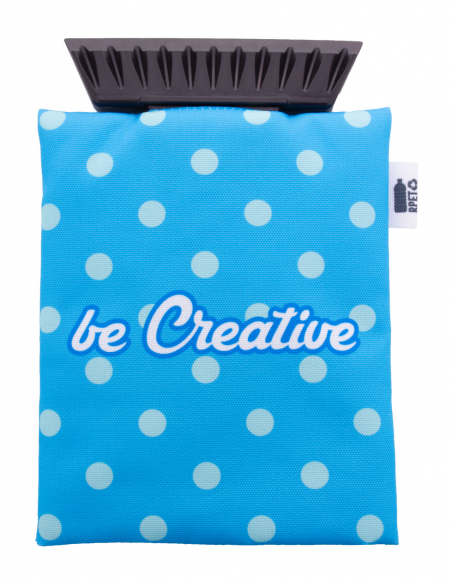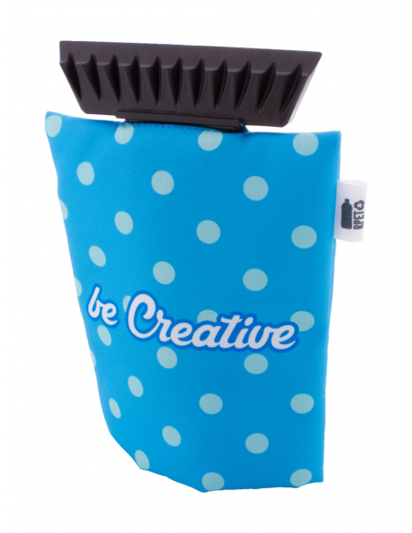 Custom made plastic ice scraper with 600D RPET polyester glove. Price includes all over sublimation printed graphics. MOQ: 50 pcs.