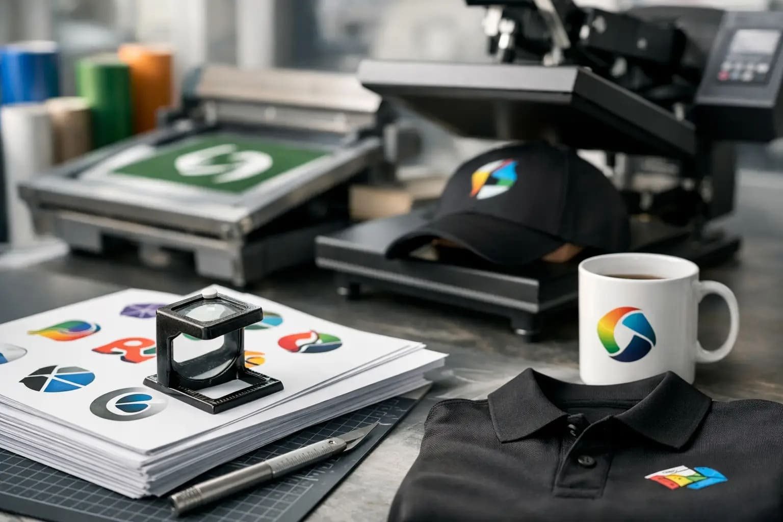 Pirmas svarbus veiksnys yra pats gaminys. Ant marškinėlių, džemperių ar striukių logotipas ženklinamas kitaip nei ant puodelių, gertuvių ar rašiklių. Tekstilė dažnai leidžia rinktis iš kelių technologijų, pavyzdžiui, šilkografijos, termo spaudos ar siuvinėjimo. Kieti paviršiai dažniau ženklinami tamponine spauda, UV spauda arba lazeriniu graviravimu. Kiekviena technologija turi savo paruošimo laiką ir gamybos tempą.