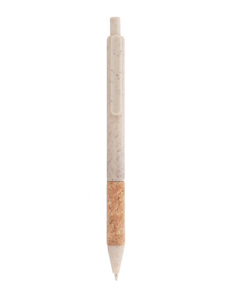 Ecological wheat straw plastic ballpoint pen with natural cork grip and coloured parts. With blue refill.