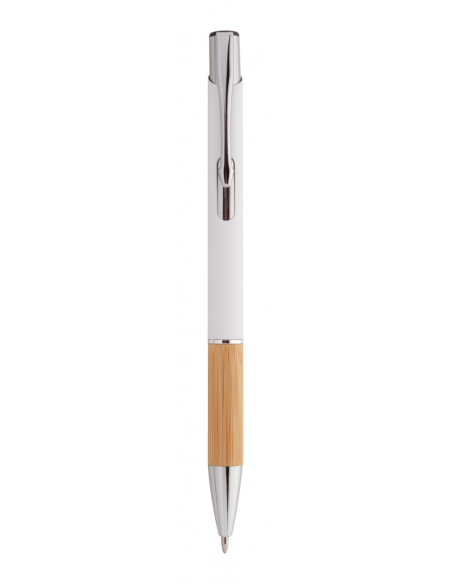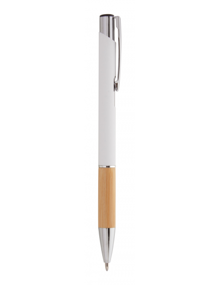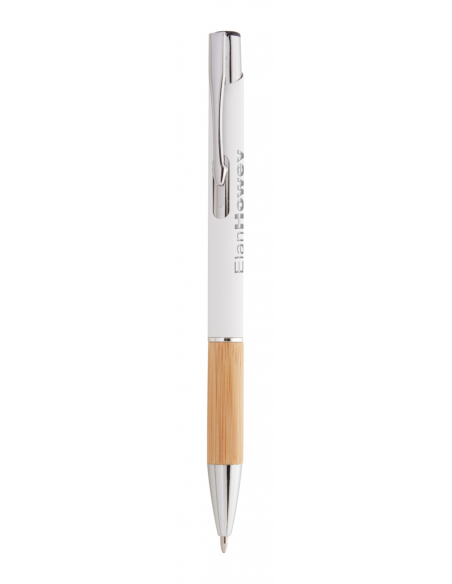 Aluminium ballpoint pen with bamboo grip, rubberized finish and blue refill. With special coating for mirror laser engraving.