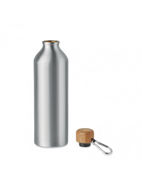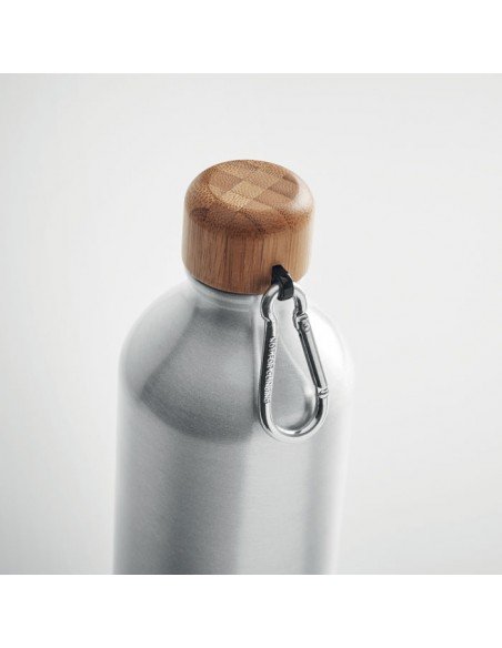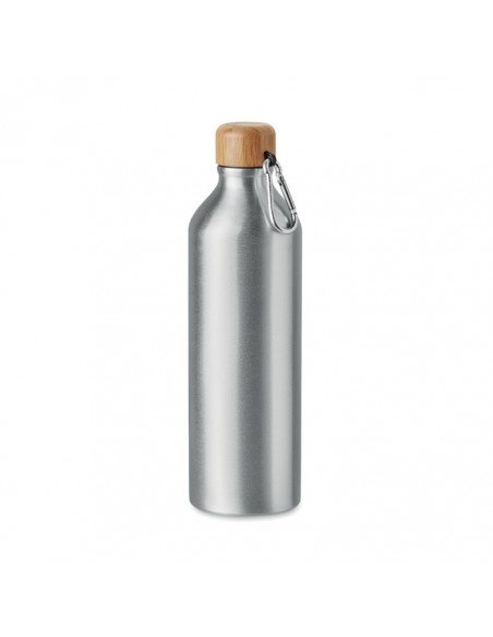 Single wall Aluminium bottle with bamboo lid and carabiner. Capacity: 800 ml. The carabiner is not for climbing (non professional use).