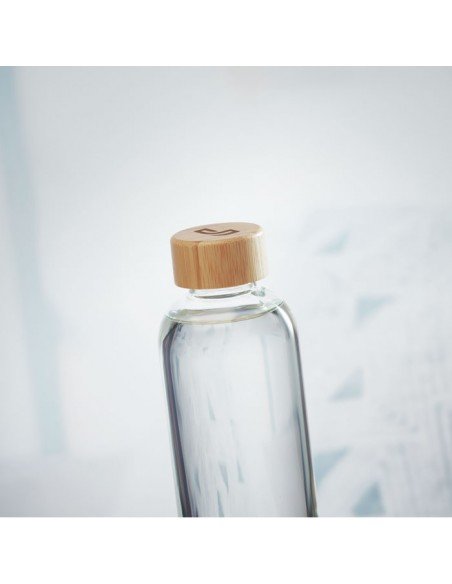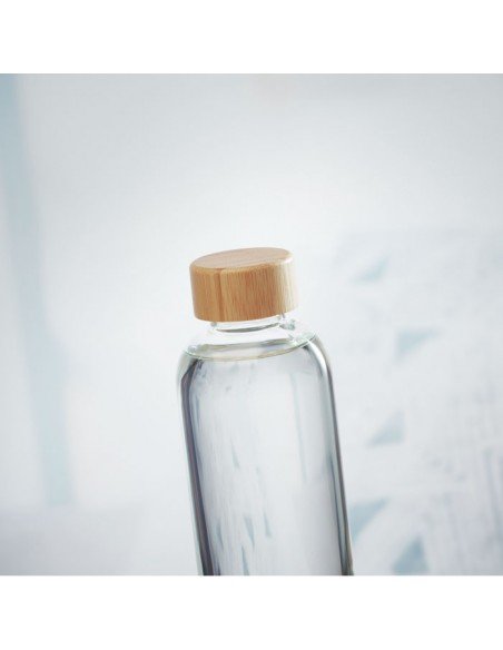 Glass bottle with bamboo lid. Capacity 650 ml. leak free.