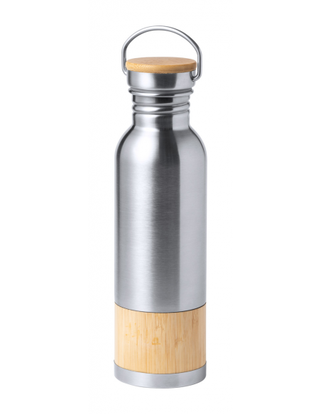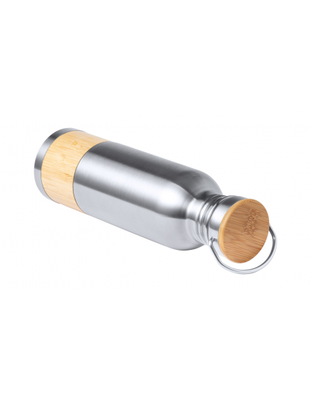 Single wall, stainless steel sport bottle with bamboo inlay and bamboo carry lid, 750 ml. Not suitable for carbonated drinks.