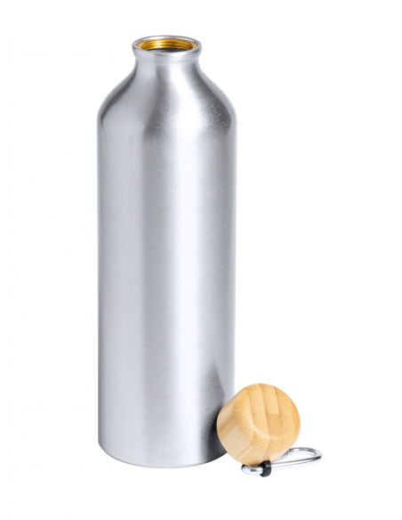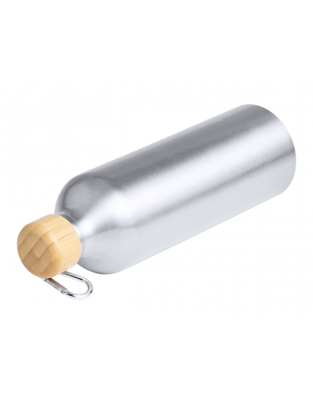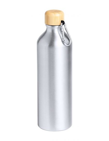 Aluminium sport bottle with bamboo lid and carabiner, 800 ml. Not suitable for carbonated drinks.