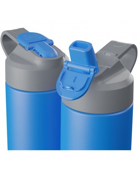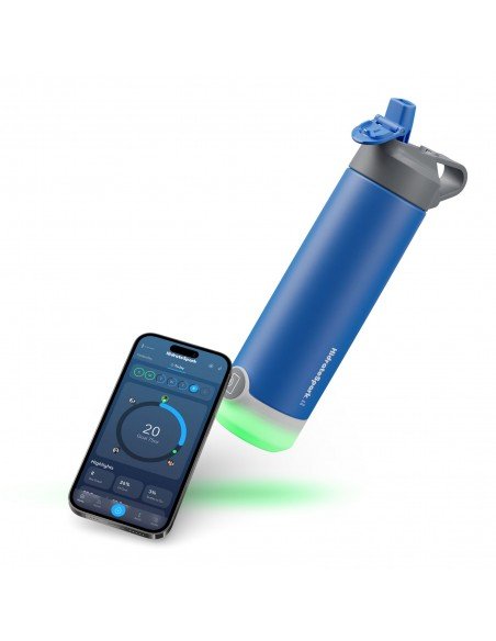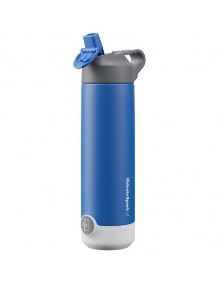 Smart water bottle that tracks the water intake through the HidrateSpark® app and glows hourly to remind you to drink. Made from vacuum insulated stainless steel material, keeping drinks cold for up to 24 hours. The leak-proof straw lid has a protective cover to keep it clean. The powerful "Tap To Track" technology updates the water intake on the HidrateSpark® app by simply tapping the smartphone to the NFC tag on the bottle. BPA free.