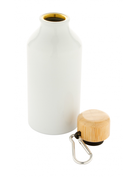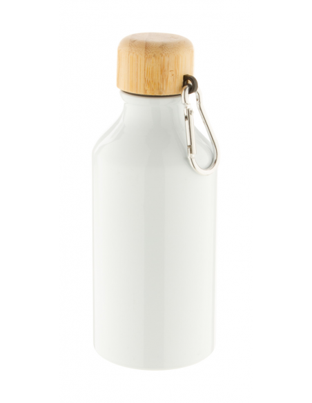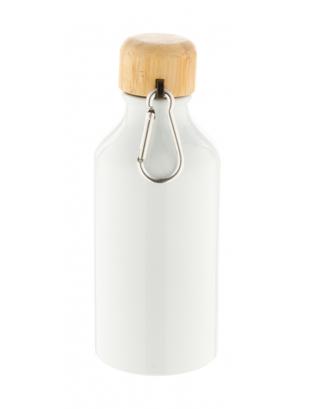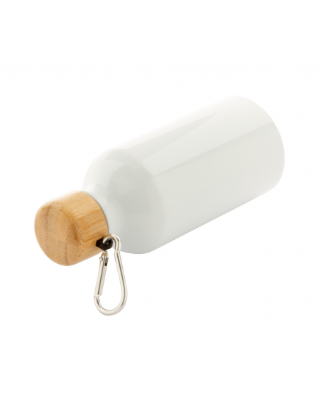 Aluminium sport bottle with bamboo lid and carabiner, 400 ml.