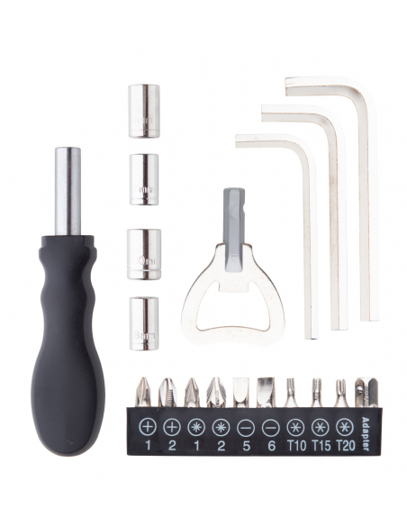 19 pc tool set in polyester case with carabiner.