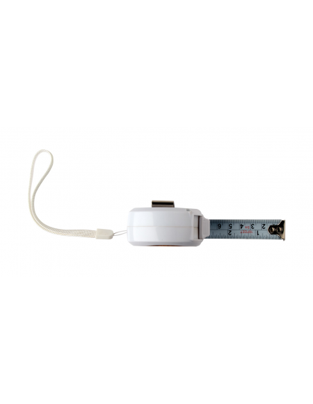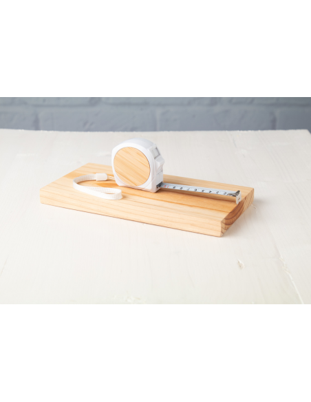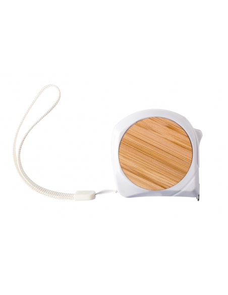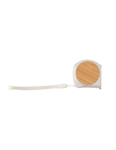 Plastic and bamboo tape measure with lock function, metal clip and hand strap, 5 m.