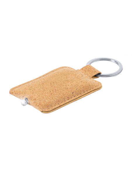Mini, natural cork flashlight with 1 LED and metal ring. With button cell battery.