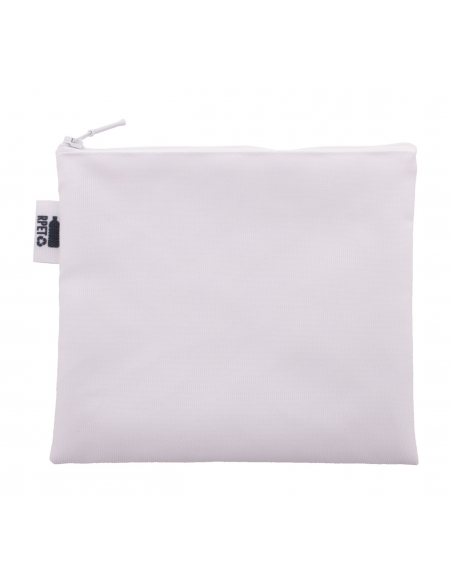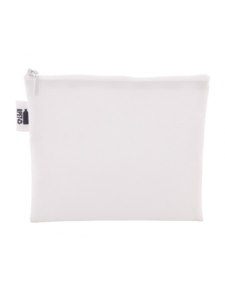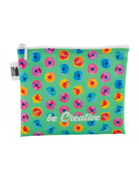 Custom made, zipped cosmetic bag in 600D RPET polyester. With all-over sublimation printed graphics. MOQ: 50 pcs.