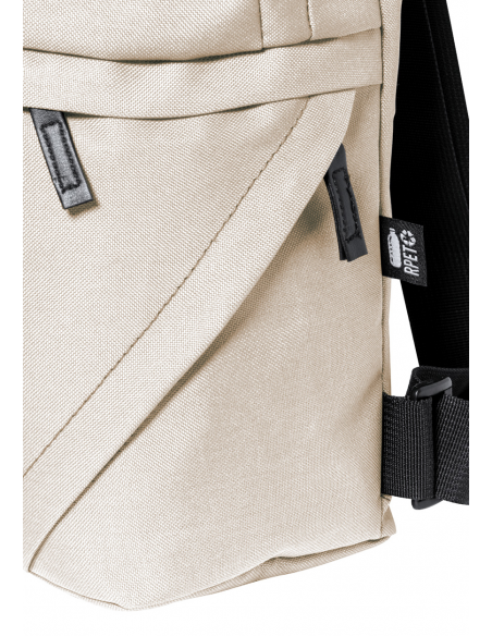 RPET backpack with zipped compartments, padded back and adjustable shoulder straps. 600D RPET polyester with distinctive RPET label.