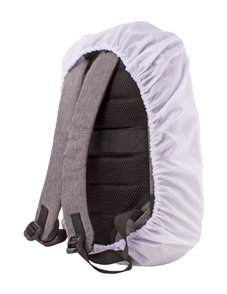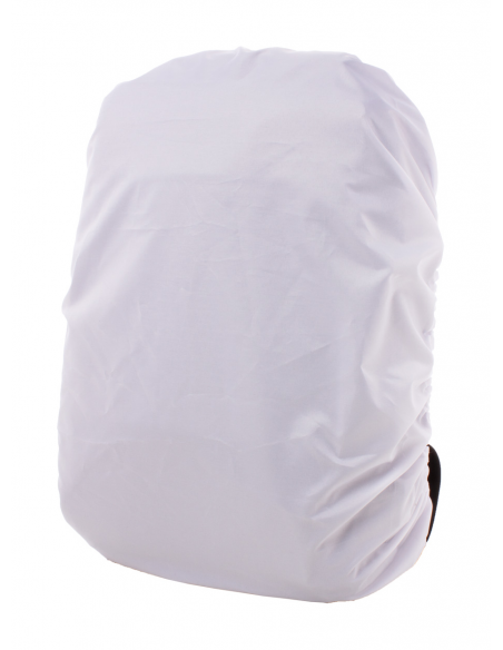 Custom made, 190T RPET polyester cover for 10-20L backpacks, with elastic band and distinctive RPET label. With all over sublimation printed graphics. MOQ: 50 pcs.
