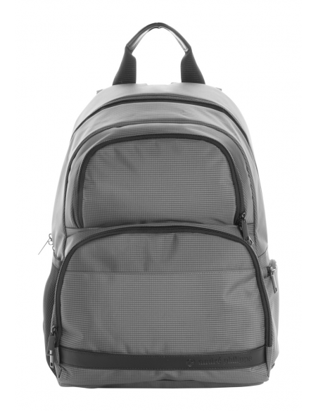 Backpack with multiple zipped pockets, padded laptop compartment, padded back and shoulder straps. Made of dual layer 420D polyester. André Philippe brand product.