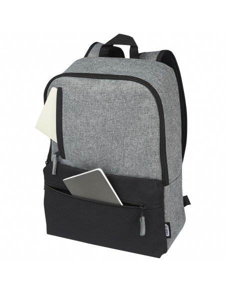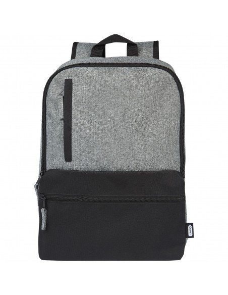 600D high-density laptog backpack. The main compartment is lined and has 2 padded dividers for laptop up to 14'' and tablet up to 9.7". The backpack has a front pocket, 1 side pocket. The back and the straps are padded