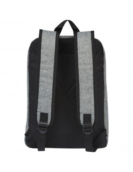 600D high density laptop backpack. It has a compartment with 2 padded compartments for a laptop up to 15.6'' and tablet up to 9.7''. Its interior is lined and cushioned. It has 1 front pocket and 2 side pockets. The back is padded and has padded back support and padded straps