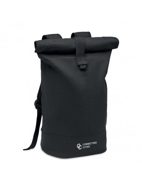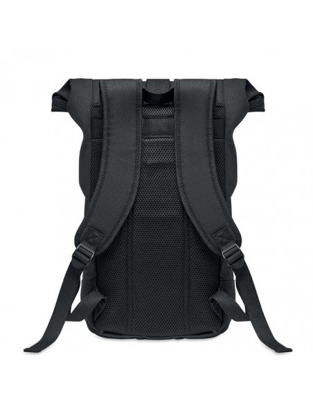 Antibacterial polyester backpack with padded laptop compartment (15"), trolley strap, padded back and shoulder straps. 600D polyester. ISO 20743 compliant.