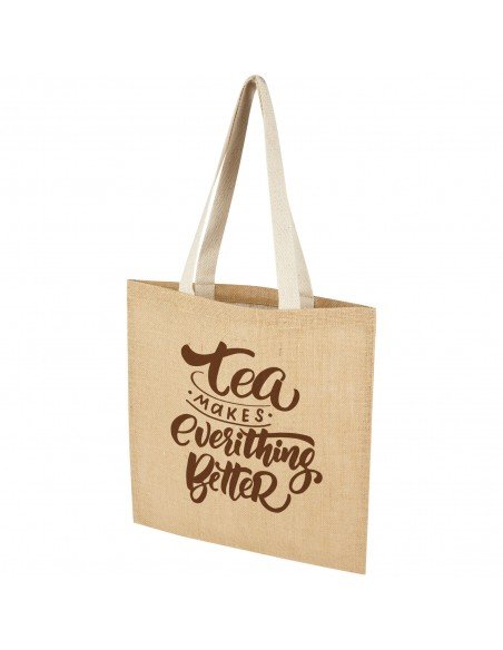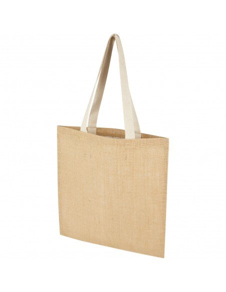 The Juta 7 litre tote bag is compact yet spacious enough to carry daily essentials, making it a perfect choice for shopping, work or travel. Constructed with strong and wear-resistant 300 g/m² laminated jute. The long woven cotton handles (30 x 2.5 cm) provide a comfortable grip also when carrying the tote for a longer time. Made in India and OEKO-Tex certified.