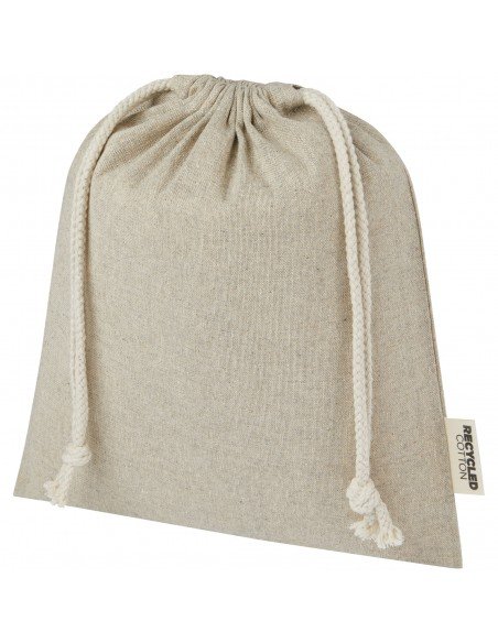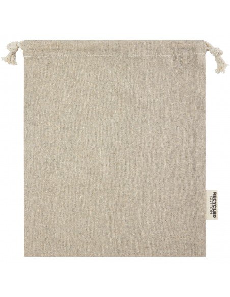 Gift bag made of GRS certified recycled cotton with cotton drawstring closure. Ideal for gifting or storing items. Size: 25 x 30 cm.