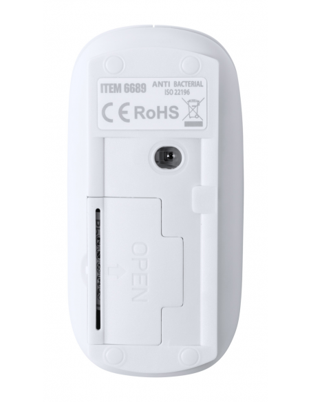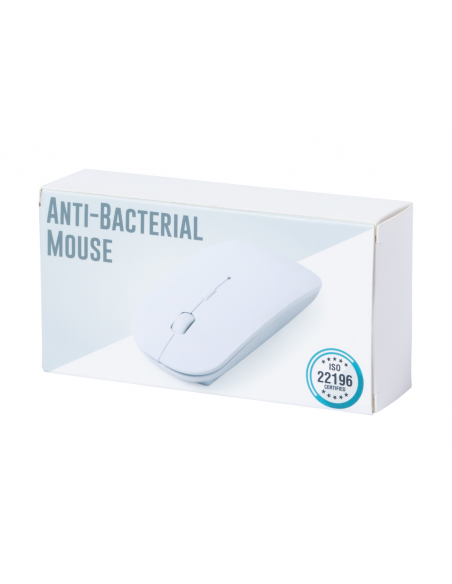 Antibacterial wireless optical mouse with plastic housing. ISO 22196 compliant. Operates with 2 AAA batteries, without battery.