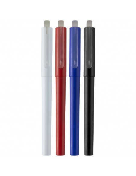 Ballpoint pen made from recycled PET plastic, reducing the use of virgin plastic. The ink in a gel pen is a combination of water-based and oil-based components, which gives it a smooth and consistent flow that is comparable to a fountain pen. This type of ink is also known for its resistance to fading, making it a popular choice for artists and writers alike. Gel pens typically have a fine, ballpoint tip that allows for precise and controlled writing.
