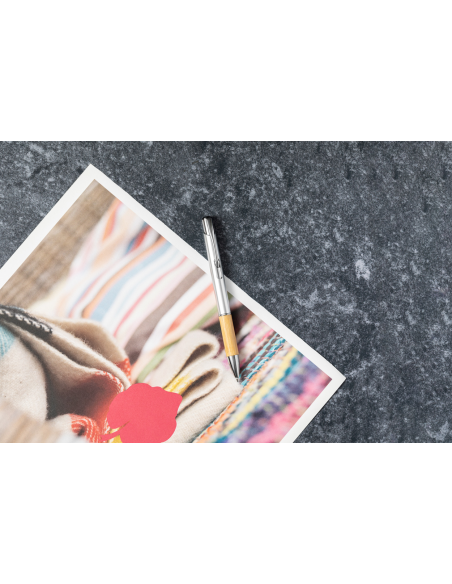 Ballpoint pen in ABS plastic with bamboo grip and chrome parts. With blue refill.