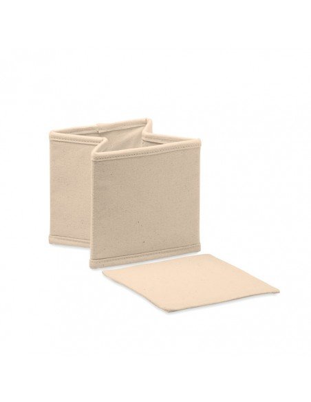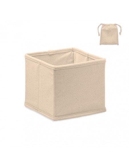 Small foldable accessories or storage box in cotton (220 gr/m²). Presented in cotton (140 gr/m²) drawcord pouch.