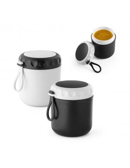 PP double-walled thermal container. With silicone carrying handle, ideal for meals. Capacity up to 380 mL