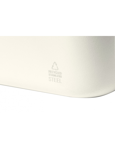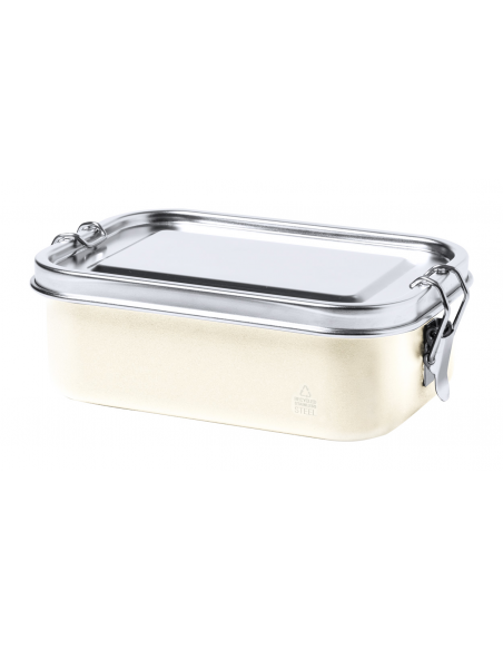 Recycled stainless steel lunch box with coloured body, contrasting lid and secure buckle closure, 750 ml.