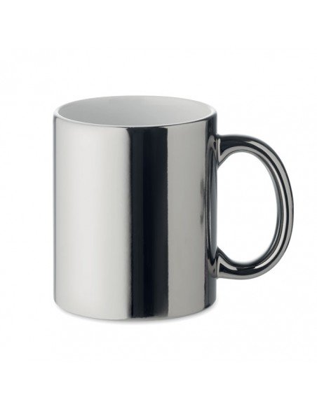 Keraminis puodelis su blizgiu aukso arba sidabro spalvos paviršiumi. Talpa 300 ml
