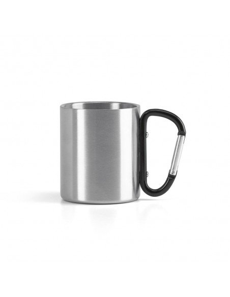 Stainless steel mug, with a carabiner handle. Capacity up to 230 ml. ø70 x 82 mm