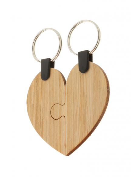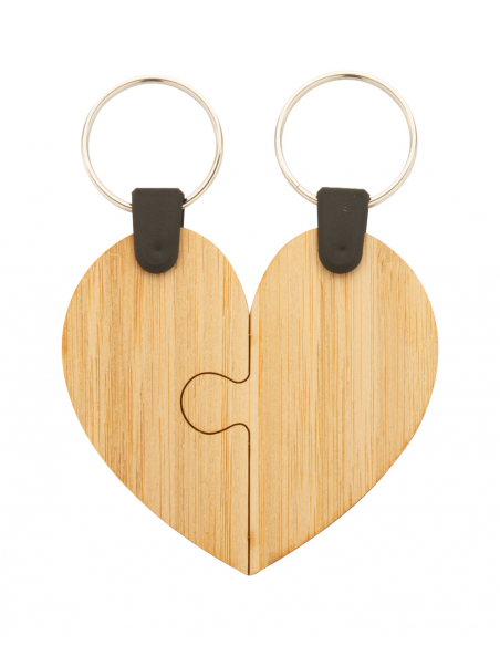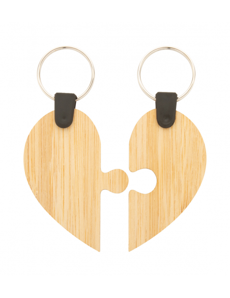 Heart shaped, double puzzle keyrings in bamboo plywood with metal rings.