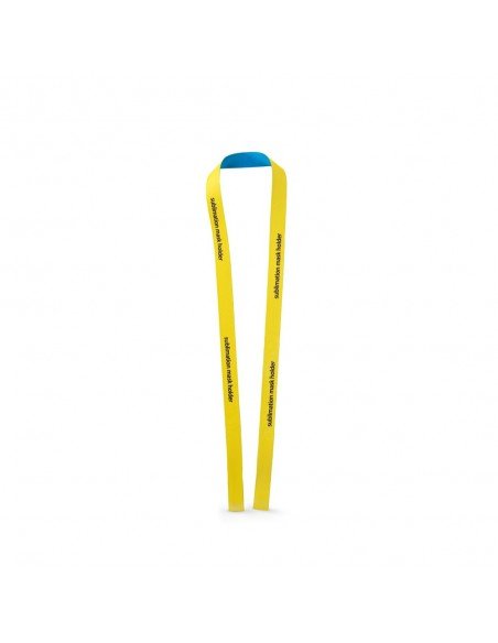Lanyard with VELCRO® to hold the protection mask around the neck. Customised Original Lanyards® lanyard in polyester with sublimation on both sides. Versatile and practical product that allows to hold all kind of protective mask through VELCRO® system (up to 5'000 uses). 15 x 375 mm