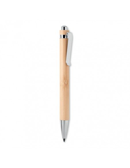 Long lasting push button inkless pen with bamboo barrel and shiny chrome fittings. This pen has a metal alloy tip and as you write, it oxidizes the surface of the paper without leaving any residue.