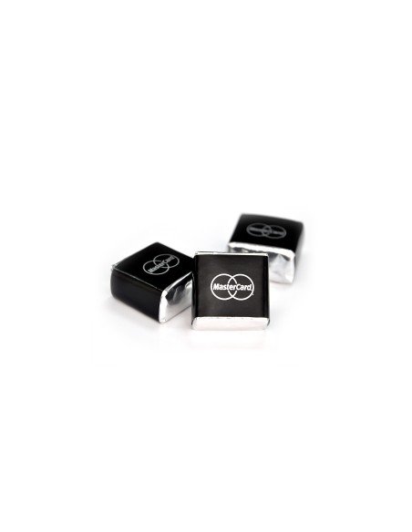 A chocolate-waffle candy with logo is a great marketing idea to win customer loyalty. Promotional sweets are perfect for restaurant, hotel, and reception desk giveaways. They are spread for free during trade shows and conferences. Thanks to corporate symbols on each candy, people will remember you whenever they eat sweets or share them with friends or relatives. Several bespoke chocolate-waffle candies with logo can be an original corporate gift. We offer full-color printing on paper packaging to customize sweets, as requested by your corporate style. Provide your materials, and we will develop the design layout for free. You can choose between classic silver or luxury gold foil colors. Both are popular with customers and match any palette. Fresh crispy wafers with cream-chocolate filling are inside each candy. People love chocolate-waffle sweets with logo for their exceptional taste qualities. This is why people can't resist this source of enjoyment!