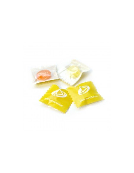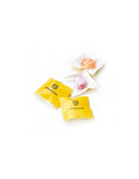 Hard candy "Juice" with logo is probably many people's favorite. It also contributes to the company's image and prestige. How to use hard candy "Juice" with a logo ? Place a vase with candies in the reception area. Such a move will create a reputation of generosity in customers' eyes. A bunch of branded candies in cardboard, tin, or plastic packaging are excellent presents for unique visitors, meaning respect and appreciation. Hard candies "Juice" with logo are suitable for any exhibition, holiday, corporate event, or advertising campaign. And even in everyday office life: caramel with a company logo in the restroom will help employees feel the corporate spirit. We offer full-color printing on one side. The other side is transparent, 100% recyclable monofoil. Provide your materials, and we will develop the design layout for free. Our company offers the best flavors of classic hard candies from fruit mix, barberry, and menthol! Everyone’s favorite treats will become an excellent advertising medium.