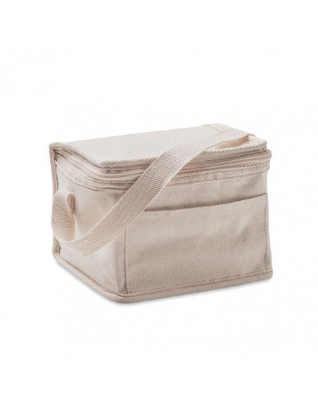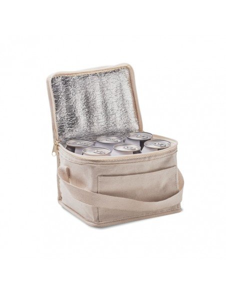 Cotton 280 gr/m² cooler bag with front pocket. 3 mm insulation aluminium laminated foil. Capacity: 3 L.