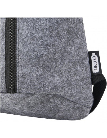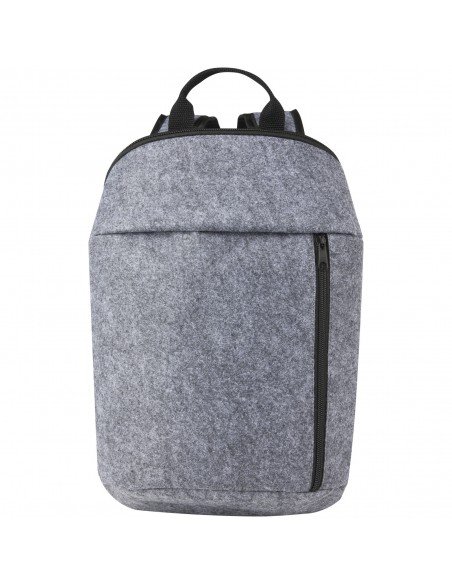 Practical cooler backpack made of high quality soft and durable GRS certified recycled felt. Features a main zippered compartment lined with food safe, high density thermal PEVA insulation keeping beverages and refreshments cold for hours. Front zippered pocket. Adjustable shoulder straps and a cotton, woven carry handle. Easy to clean. Capacity: 7 litres.