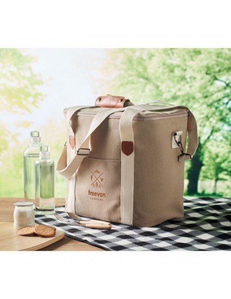 Lunch bag with several convenient pockets for napkins or snacks and 2 lunch boxes for sandwiches or salad. Plastic lunchboxes are microwave proof. 420D of Polyester.