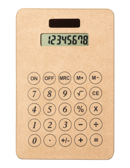 8-digit solar powered calculator in recycled paper housing. Including button cell battery.