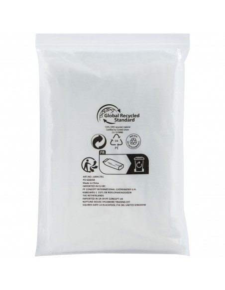 The Mayan one-size-fits-all disposable rain poncho is made from 100% recycled plastic. This see-through hooded poncho is ideal to have available when overwhelmed by a rainstorm during an outdoor festival or any other outdoor event. Delivered with a pouch that is suitable for printing. Size: 90 x 120 cm.