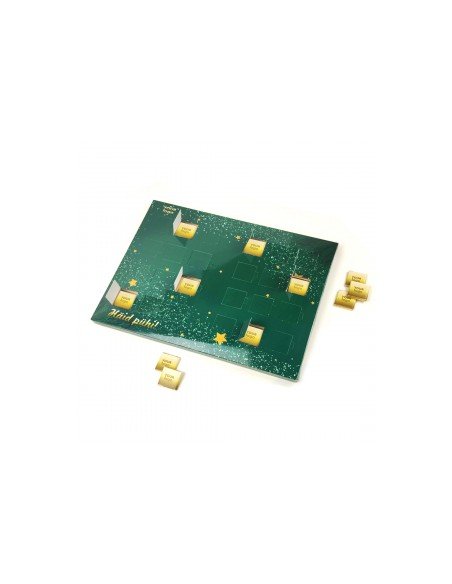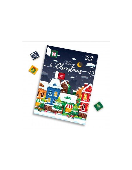 According to tradition, the Advent calendar is a giant postcard with opening windows with chocolate in each. It shows the time remaining until Christmas. Such a chocolate set "Advent calendar" 120 g decorated in your corporate style makes the waiting for New Year's holidays even more magical. Advent calendars have become so popular that they are given to absolutely everyone. It is an original pre-Christmas gift for company employees. Such a souvenir can also be given to clients or business partners as a corporate present. We offer full-color printing of your logo and free layout design of a chocolate set "Advent calendar" 120 g . Using your logo and wishes, we will create an original gift that everyone will remember. It will increase employee loyalty and become part of an effective advertising campaign. We offer to choose between chocolate sets "Advent calendar" 120 g of two classic tastes: delicate milk and bitter dark chocolate. The minimum order quantity of boxes is 50 pieces.