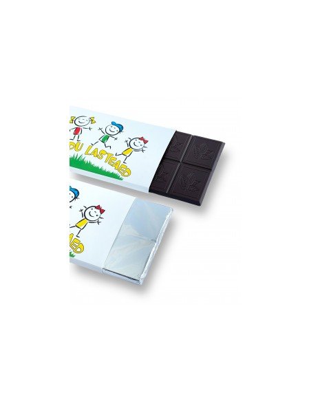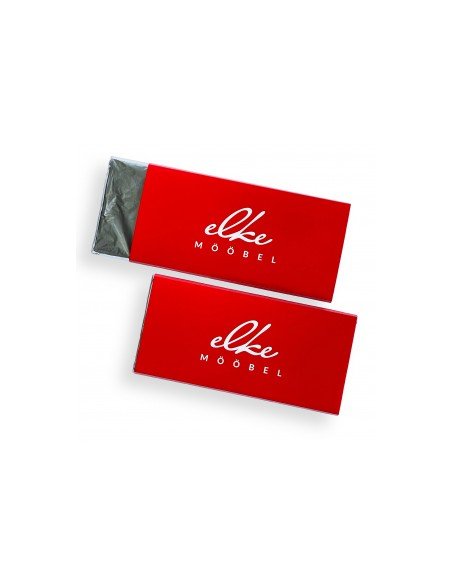 The chocolate bar 100 g will be a pleasant, tasty, original corporate gift for any company and business employee. A postcard with an attached candy is an original budget addition to the main gift. Also, you can use branded chocolates as authentic business cards — your partners will eat them, but they will hardly forget your company's name. If you congratulate your partners on state and professional holidays, remember to complement your present with an original chocolate congratulation. This will please and strengthen your position in their eyes. We offer full-color placement of any company's helpful information on the cardboard wrapper and are committed to designing a layout for free. The size of the chocolate is suitable for writing a wish for the company's founding day, Christmas, or advertising your brand effectively. The inner foil color is classic silver, considered neutral, and ideal for sleeve packaging. The corporate chocolate bar 100 g is available in milk or dark chocolate tastes. Any option wins the favor of partners, appealing to any gourmet.