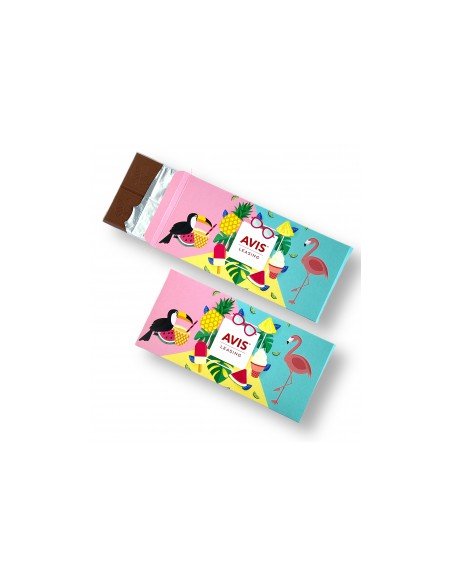 Do you still think about how to congratulate your partners on a corporate holiday? A chocolate bar "Box" 100 g will be an excellent gift for partners and employees. Colorful chocolates decorated in your corporate style are used as invitations to an event or as a sign of gratitude with a bouquet and an official letter. Branded chocolate bars "Box" 100 g are packaged in convenient cardboard boxes that prevent the product from damage. Also, the packaging is a huge advertising space that can be filled from both sides. Full-color printing allows placing any greeting and a beautiful picture. The inner foil color is classic silver, considered neutral and ideal for box packaging. You don’t need postcards. Our chocolate bar is an excellent and original greeting card, a delightful gift, or a cute addition to the leading corporate present. The chocolate bars "Box" 100 g are available in delicate milk and classic dark chocolate tastes. If you doubt what to choose, you can take a batch and combine both options.
