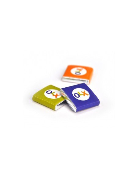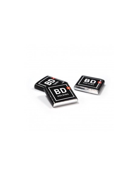 We create branded chocolate with logo 5 g for Promotions, conferences, exhibitions, and any other business events. Decoration of reception areas, beauty salons, and banks. As a compliment in coffee shops, hotels. The main goal of corporate sweets is to increase brand recognition and form only positive associations with your brand with potential buyers. We offer full-color print on the coated paper, allowing you to apply the company name, logo, and other information on the top and bottom of each chocolate with logo 5 g . Get a professional design layout for free! The inner foil color is traditionally silver or gold. Whatever you choose, it fits with any corporate color and event. There are two bites of customized chocolates with logo 5 g to choose from. Milk 32% — chocolate with milk that melts in the mouth. Dark 70% — dark chocolate with a lot of cocoa and little sugar. You can choose your corporate set from both types of candies.