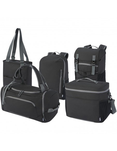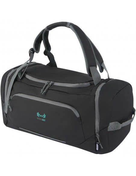 Sportinis krepšys Retrend Patvarus krepšys, pagamintas iš 100% perdirbto plastiko, kuris padeda sumažinti plastiko atliekų kiekį. Didelis pagrindinis skyrius ir užsegama priekinė kišenė, paminkštintas peties dirželis ir rankenos. Šiam maišeliui pagaminti perdirbami maždaug 27 buteliai.