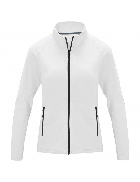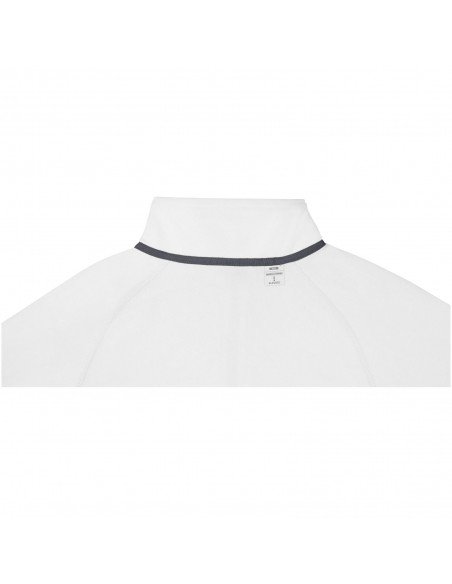 GRS recycled center front zipper coil zipper. Inner stormflap with chinguard. Front pockets with zipper. Chest pocket with zipper closure. Easy grip zipper pullers. Branded hangerloop. Necktape. Halfmoon. Heat transfer main label for tagless comfort.