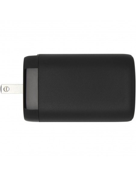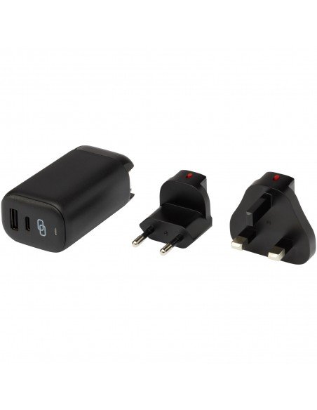 The ADAPT recycled plastic PD travel charger is a compact and environmentally friendly charging solution designed to keep you powered up in style while on the go. With its recycled plastic housing and copper and nickel plated components, this charger offers both durability and sustainability. The charger comes with US, EU and UK plusg, allowing you to use it in various regions with ease. The built-in transformer ensures seamless power conversion for international travel (AC 100-240V 50/60Hz). This travel charger comes with 2 ports (Type-C and USB A) that offer versatile and superfast charging options, and the PPS (Programmable Power Supply) feature allows for adaptive charging. Delivered in a premium kraft paper box with a colourful sticker.