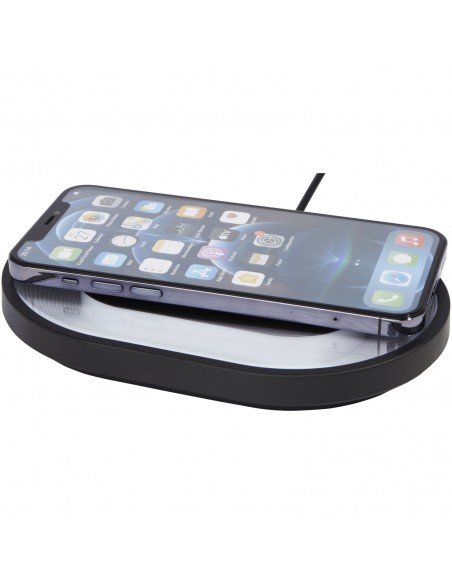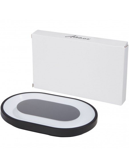 Fast charging wireless charging pad with RBG mood light effect and anti-slip mat. Wireless output is up to 15W, meaning that it's almost 3 times faster than conventional 5W wireless chargers. Built-in Foreign Object Detection (FOD) safety feature to avoid risk of fire. Compatible with all Qi enabled devices (iPhone 8 or above and Android devices that support wireless charging). Input power: 5V/2A, 9V/2.67A. Output power: 5W/7.5W/10W/15W. LED light: 6 x 5050 LED, 1000 mcd. Includes a 100 cm TPE USB A to Type C 3A PD charging cable. Delivered in a standard gift box