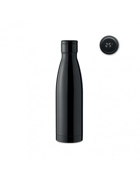 Double wall stainless steel insulating vacuum bottle. It has an LED touch thermometer incorporated in to the top of the lid. 1 replaceable CR 2032 battery included. Leakproof. Capacity: 500 ml. Leak free.